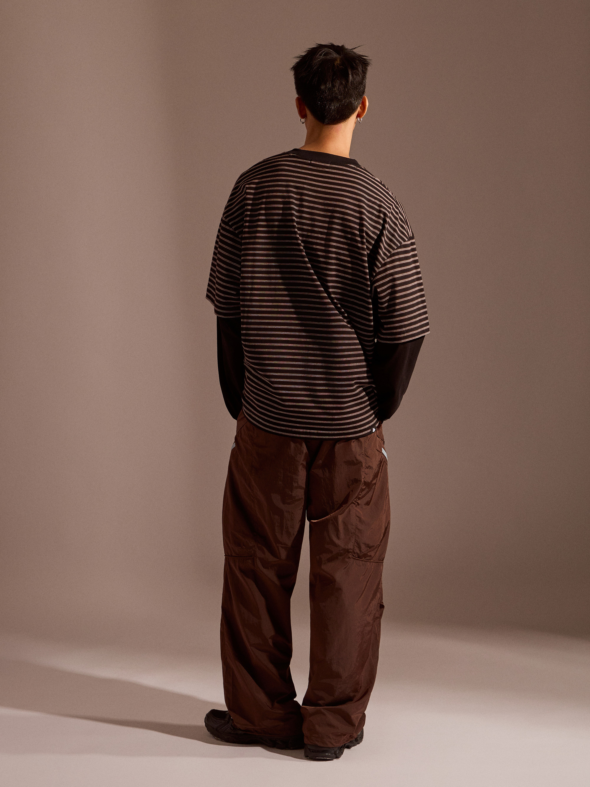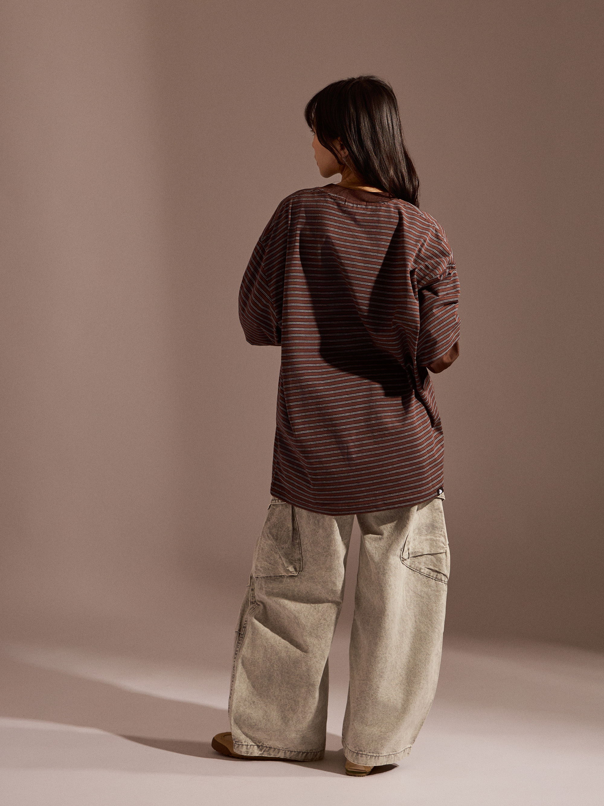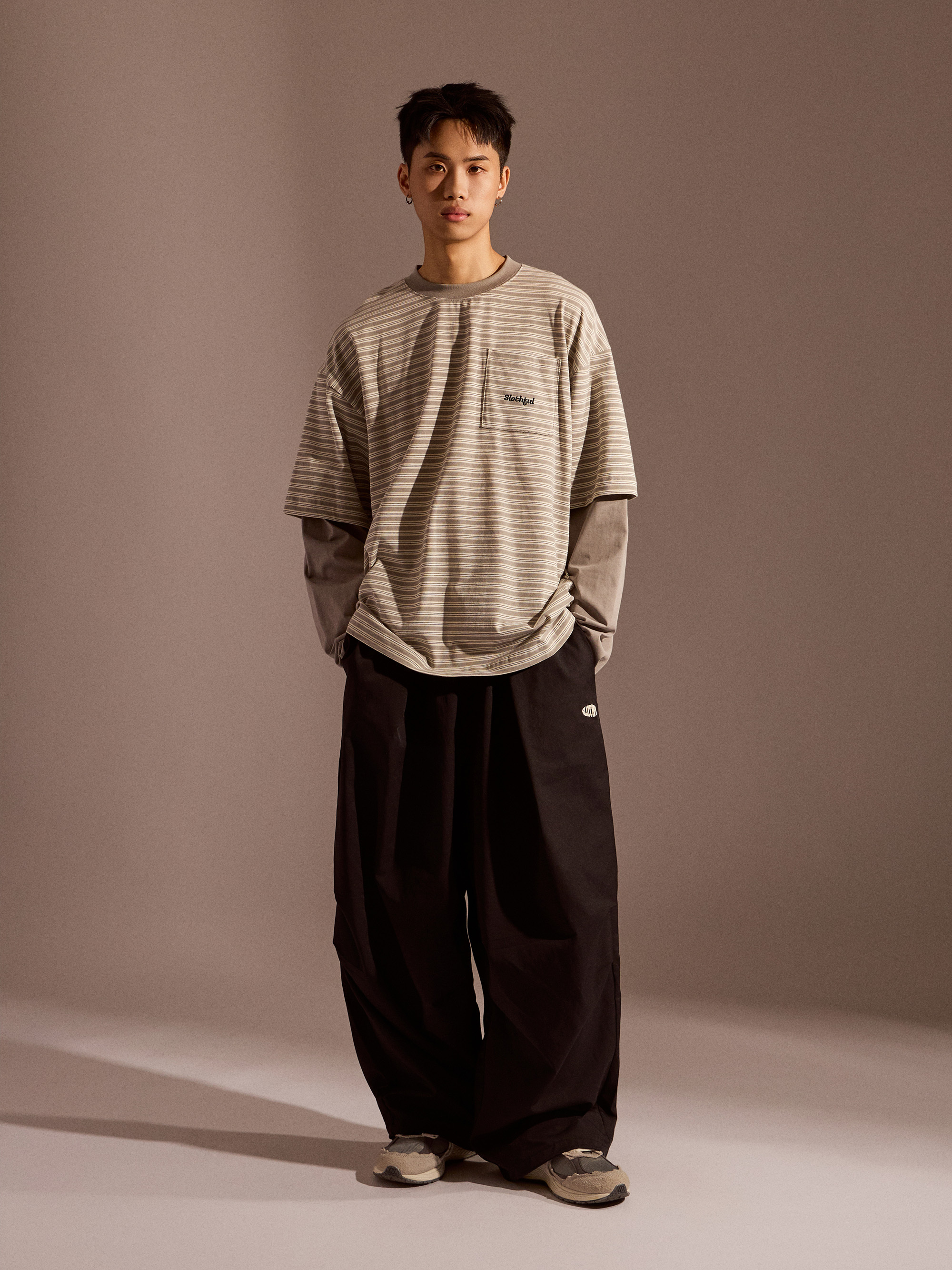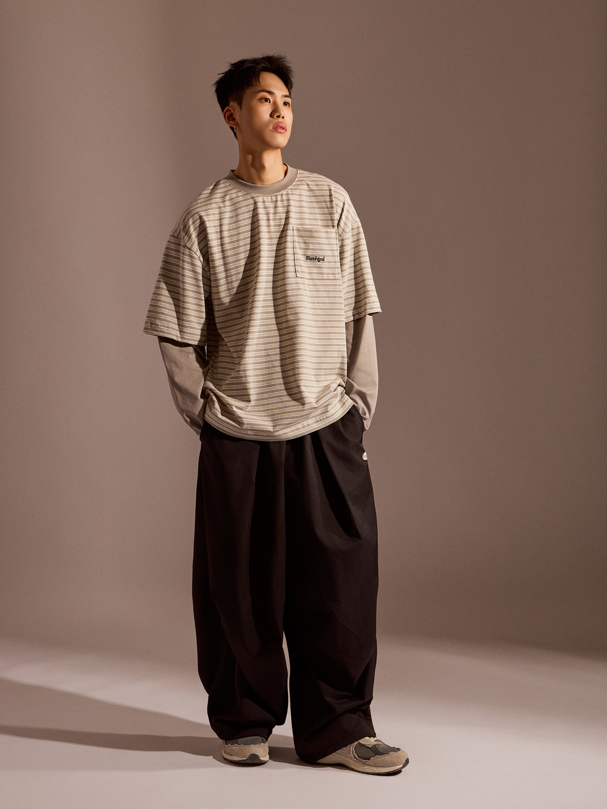 ‧條紋+素色袖子配色:大身條紋搭配素色長袖,對比更突出